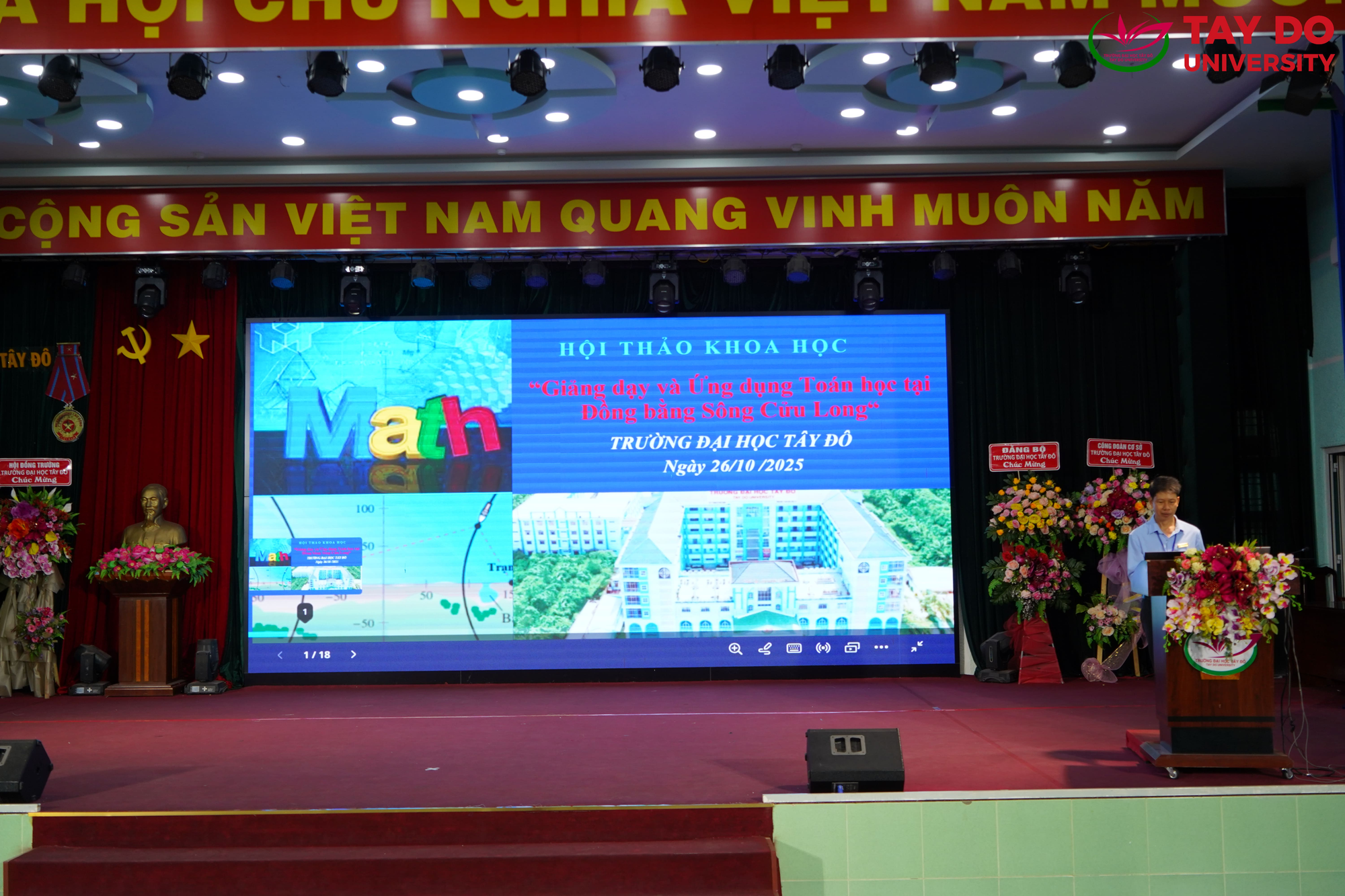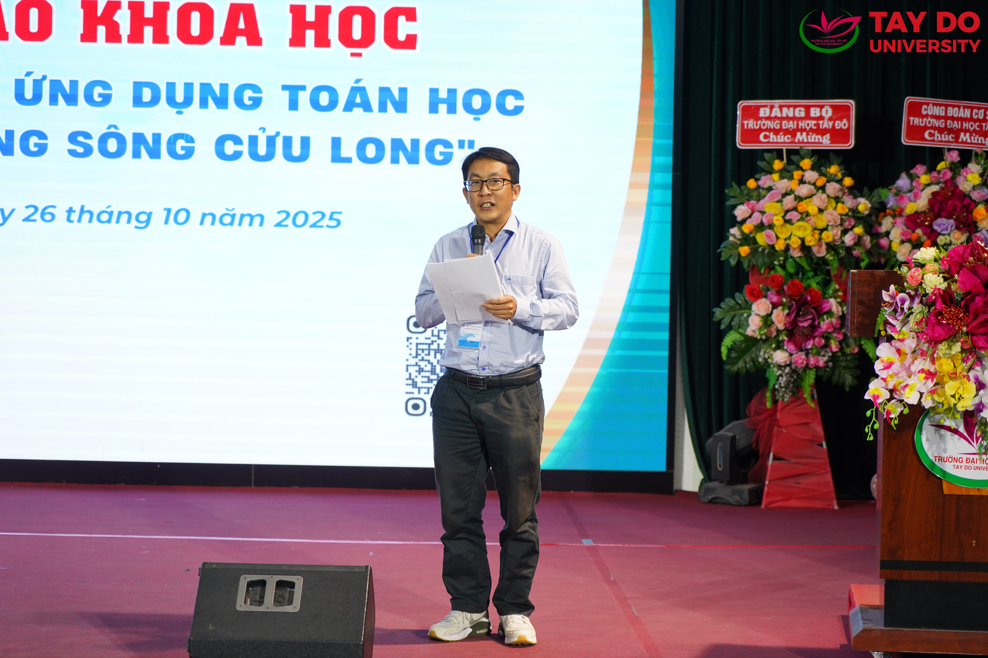 Sáng ngày 26/10/2025, Trường Đại học Tây Đô tổ chức Hội thảo Khoa học với chủ đề “Giảng dạy và Ứng dụng Toán học tại Đồng bằng Sông Cửu Long”. Hội thảo nhằm tạo diễn đàn học thuật để các nhà khoa học, giảng viên, sinh viên và những người yêu Toán cùng trao đổi, chia sẻ kinh nghiệm trong công tác giảng dạy, nghiên cứu và ứng dụng Toán học vào thực tiễn đời sống.